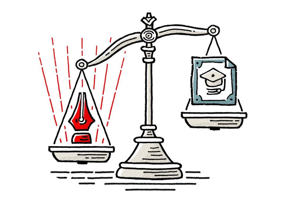 People look at my path into design and ask me about the value of my degree (Associates of Science: Multimedia at Fullsail University) and whether it was worth the expense. Back then, it was affordable. I took out $25K in loans and graduated in 14 months. Nowadays, I would strongly question any design school that wants to put you deeply in debt. I'm not saying formal education is bad, but for intro-level jobs, people are more concerned with actual experience and design skills, not the school you graduated from.